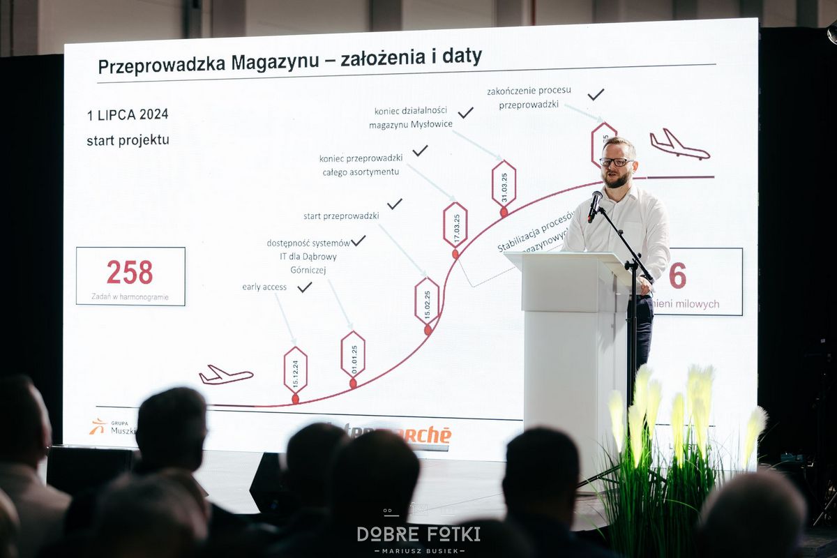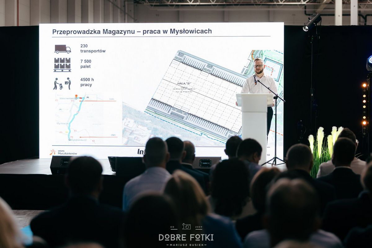 Nowa lokalizacja o powierzchni 33 600 m² zastąpiła dotychczasową bazę w Mysłowicach, zapewniając firmie Intermarché znacznie większe możliwości operacyjne. Wśród uczestników wydarzenia znaleźli się m.in. Sławomir Czarnecki – prezes Grupy Muszkieterów, Adrian Podziemski – prezes Intermarché w Polsce, Prezydent Sosnowca Arkadiusz Chęciński, a także przedstawiciele Panattoni, inwestora, pracownicy oraz zaproszeni goście.